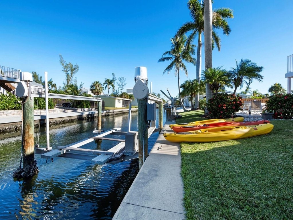 This fabulous 3 bedroom, 2 bath Longboat Key pool home has it all! It is situated on an oversized 11,250sf lot on the canal with 125 feet of seawall, so you can truly enjoy hopping on your boat or kayak or paddle board right outside your back door! It was built strong with steel and precast slab and all of the windows and doors are storm rated or have shutters. Two large garages allow for plenty of storage space, and one of them flows through to the backyard which allows for all your water toys to be easily at the ready. The 2nd floor living area of the home is elevated over the garage and storage, but the extremely large ground floor space has been set up as a great game and gathering spot opening to the gorgeous backyard. The sparkling salt water pool sits to the side with steps up to the outdoor deck over the garage space and is the perfect spot to enjoy the picturesque views. Once inside the home is meticulously kept with a clean white kitchen, open to the living area. Multiple windows and doors and balconies allow for a perfect balance of indoor/outdoor living. All of this plus deeded beach access down the street mean you have covered all the bases to be living the true island lifestyle that Longboat Key is known for.